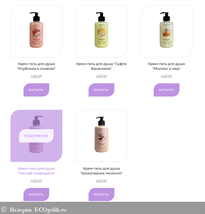 Кстати, в линейке крем-гелей у АлеВи есть и другие ароматы: