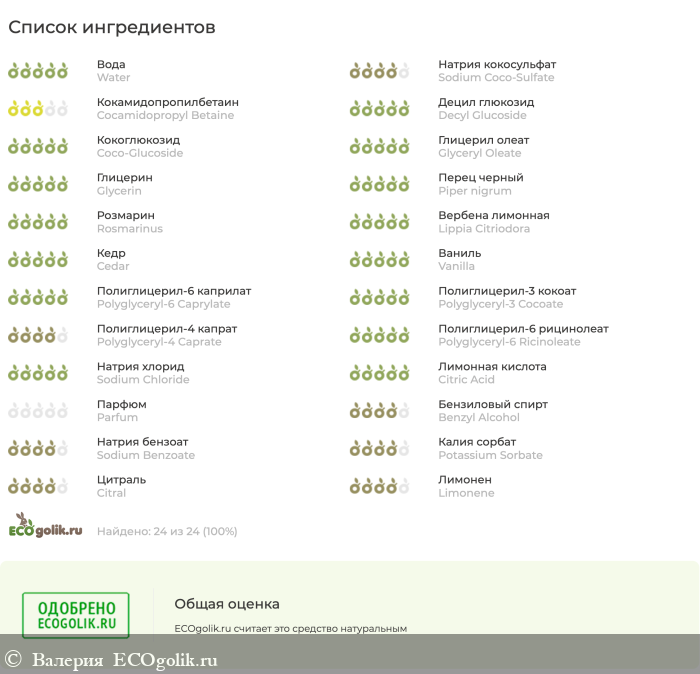 "Зеленый кролик" распознал все компоненты и с удовольствием одобрил к применению аромагель для душа!
