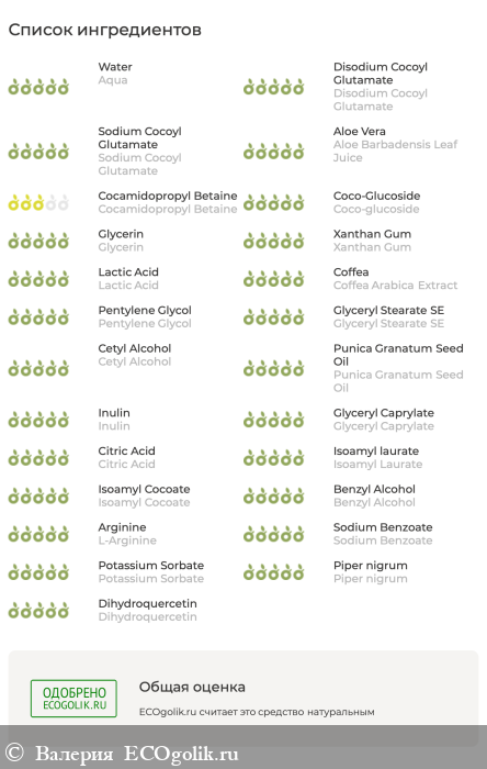 Состав полностью одобрен сервисом проверки - не содержит отдушек - продукт сертифицирован Ecocert Greenlife в соответствии со стандартом COSMOS.