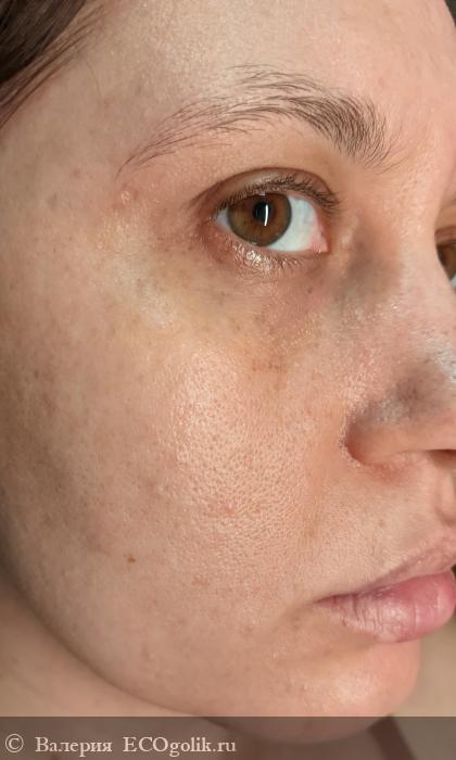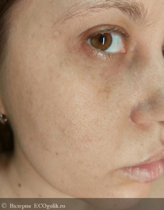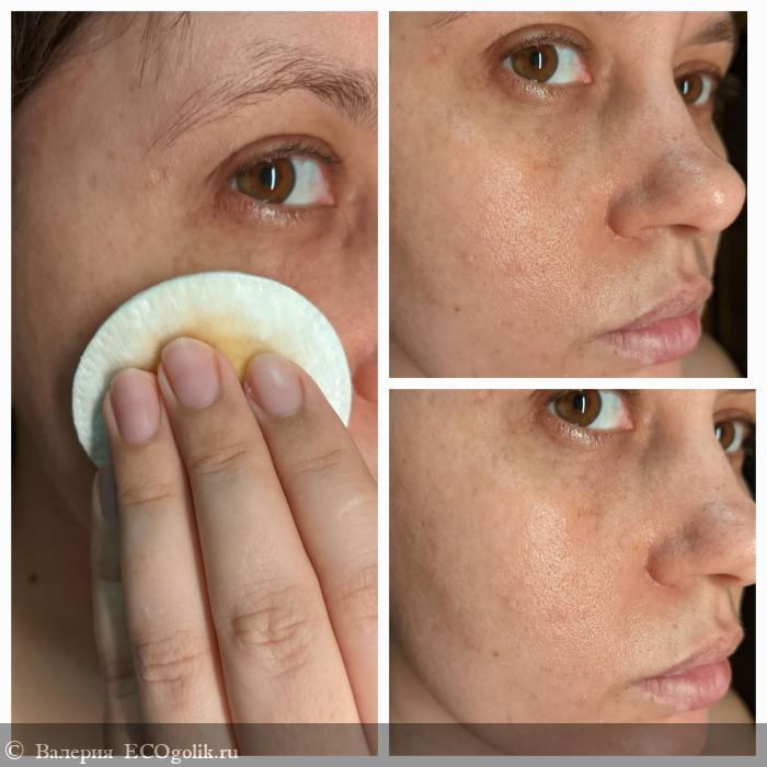По коже тоник распределяется равномерно (наношу его ватным диском), моментально не впитывается, нужно чуть подождать. Меня немного смущает небольшое покраснение кожи сразу после нанесения средства, но оно в течение 1-2 минут проходит без всяких последствий. Ни аллергии, ни раздражения, ни шелушения у меня не было. Так что я успокаиваю себя, что видно так и нужно. На другой тоник бренда Kleona такой реакции у кожи нет.