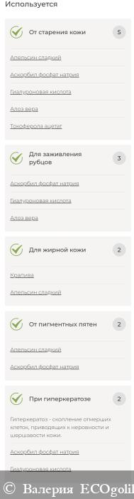 Вода дистиллированная, экстракт крапивы, сорбитол, глицерин растительного происхождения, моноолеат глицерина, кокоглюкозид, масло алтайской облепихи, масло оливковое, эфирное масло апельсина, натрия аскорбилфосфат, гель гиалуроновой кислоты, гель алоэ вера, экстракт японской жимолости, линалоол, дигидрокверцетин, токоферола ацетат (витамин Е), комплекс незаменимых полиненасыщенных жирных кислот (витамин F), гуаровая камедь.