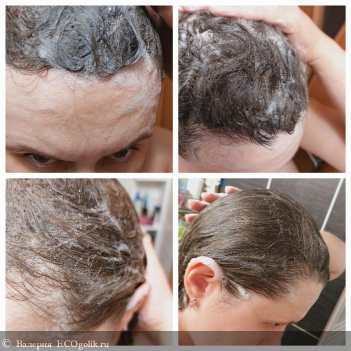 Шампунь я за одну помывку волос использую два раза подряд: сначала намыливаю только корни и смываю, затем уже мою волосы полностью (и у корней, и по всей длине).
