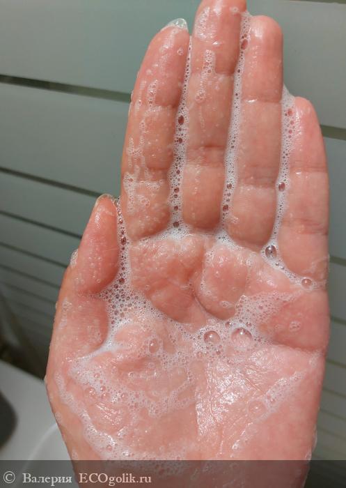 Данное жидкое мыло не образует густую пенку, у него наоборот очень скудное, маленькое пенообразование: