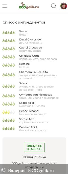 Отличную оценку Ecogolik не поставил только одному ингредиенту - бензиловому спирту, который в данном составе выступает в виде антисептика и консерванта.
