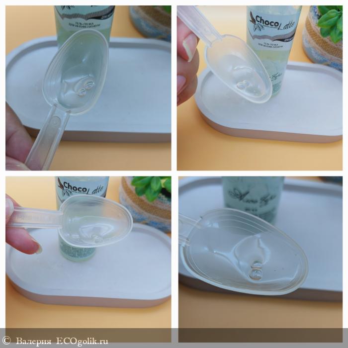 Гель-пенка от ChocoLatte по консистенции мне показалась слишком жидкой, текучей. Я ожидала, что так как это гель, то его консистенция будет более густой.