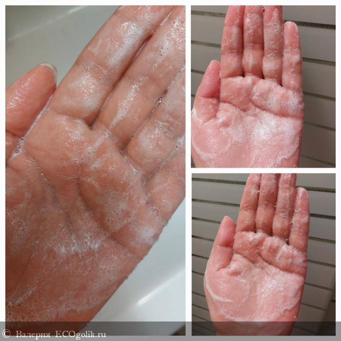 Гель-пенка хорошо пенится, но при этом нет моря пены.