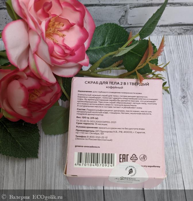 Этот мой отзыв будет о твёрдом скрабе для тела 2 в 1 Greena Avocadova "Кофейный".