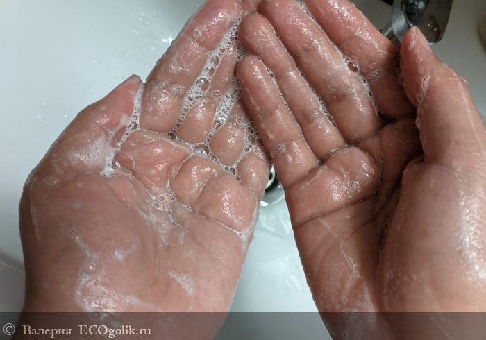 Мне нравится, что всего пару намыливаний и пенки хватает, чтобы отмыть руки. Даже в холодной воде оно отлично пенится. При этом пены не слишком много, и она негустая.