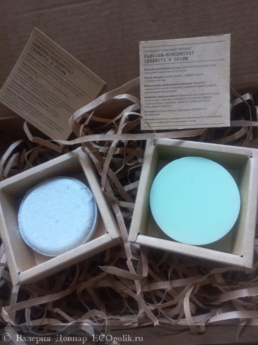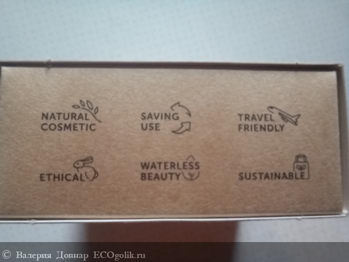 Упакован он в аккуратную квадратную коробочку из картона, она выдвигается. Выглядит красиво, презентабельно, очень классно на подарок. Единственный нюанс - если вы пользуетесь твердыми шампунями, бальзамами в подобном формате - упаковка почти у всех из них крафтовая, перерабатываемая - бумага, картон. Это здорово, но предусмотрите что-то для хранения средства потом на полочке в ванной - может какую-то отдельную мыльницу.