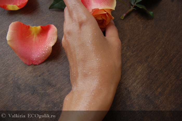 – это просто «сказка», если сначала нанести крем, а потом заниматься домашними делами без перчаток, то кожа рук не будет так сохнуть от соприкосновения с водой. Защитная плёнка масла как будто ограждает руки влаги. Конечно, я не говорю о часовом мытье полов или ручной стирке белья с порошком, скорее этот способ работает при мытье посуды и влажной уборке пыли.