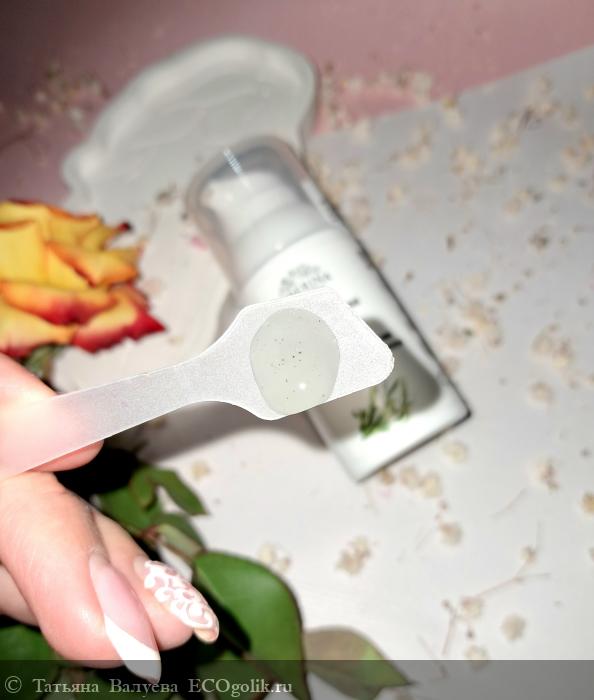 Текстура сыворотки лёгкая и нежная, имеет жидковатую консистенцию, что позволяет ей быстро впитываться в кожу, не оставляя ощущения липкости или жирности