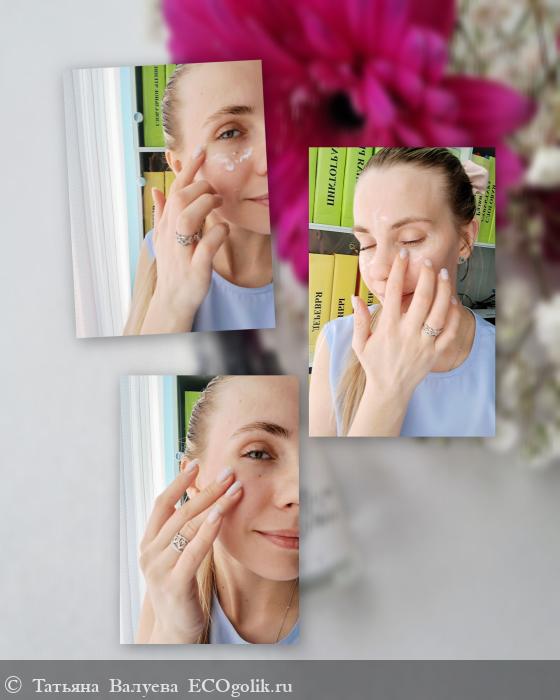 Крем легко распределяется по коже, не создавая ощущения тяжести или жирности. Благодаря своей консистенции, небольшого количества средства достаточно для полноценного ухода за областью вокруг глаз, что делает его экономичным в использовании