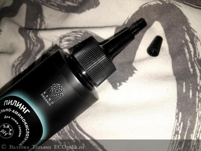 Так как у меня ещё было не много перхоти, я сделала свой выбор в пользу такого средства, как "Миндально-аминокислотный пилинг для кожи головы" от бренда Nano Organic. Собственно, о нём, я и хочу рассказать