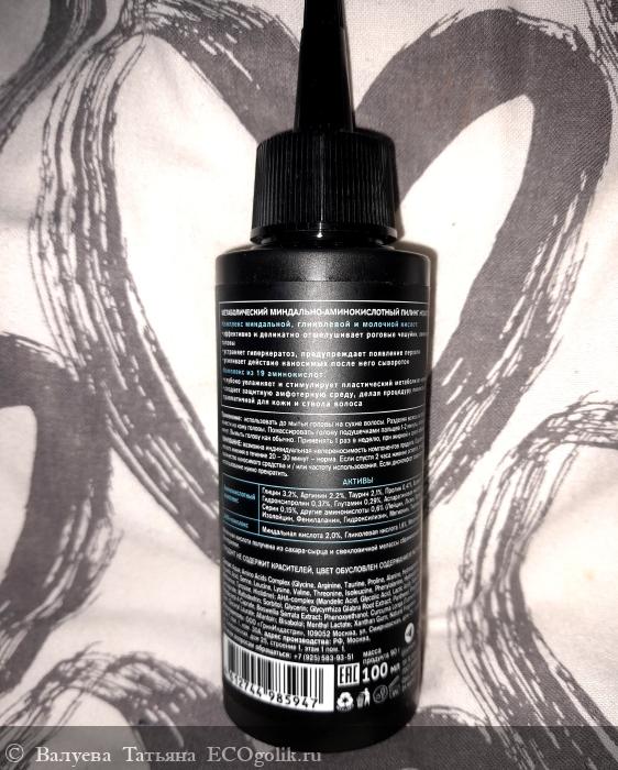 - создает защитную амфотерную среду, делая процедуру пилинга не травматичной для кожи и ствола волоса.
