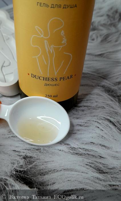 Натуральный гель на основе гидролата зеленого чая и фруктового экстракта груши сорта «Дюшес». Отлично пенится, легко смывается, не оставляет скользкой пленки на коже. Не сушит и не вызывает ощущения стянутости. Натуральные добавки великолепно увлажняют кожу, повышают тонус, делают её мягкой и бархатистой. Искрящийся аромат груши «Дюшес», как воспоминание из детства, наполнят бодростью и хорошим настроением.