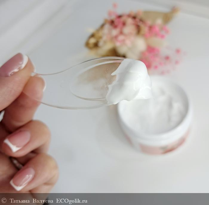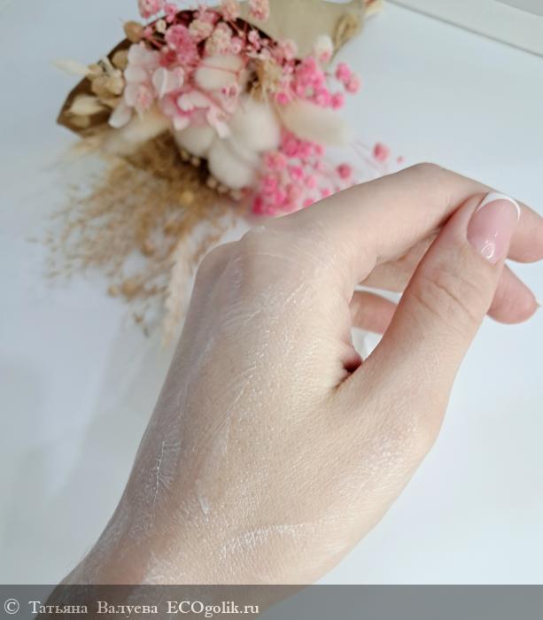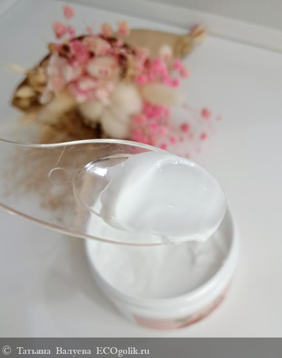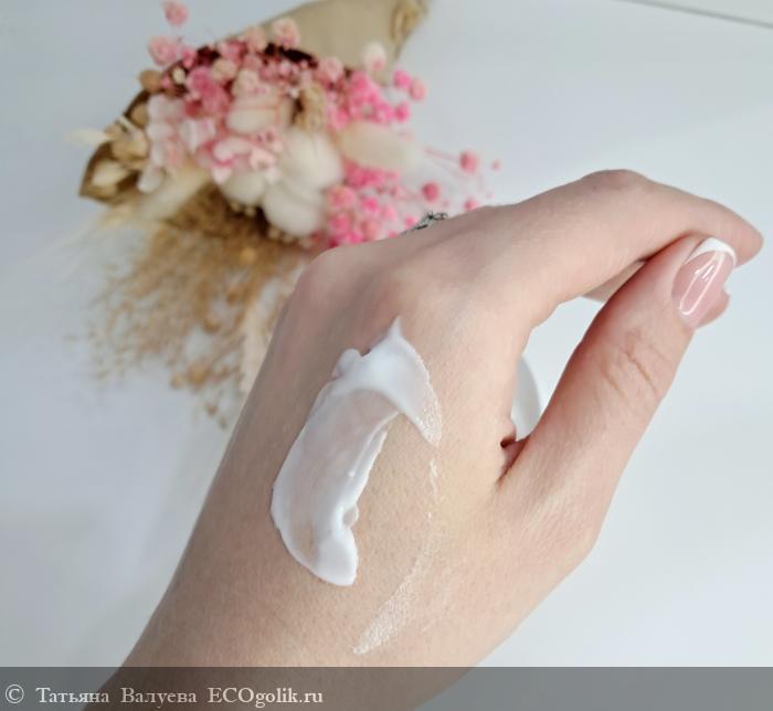 Крем имеет легкую и воздушную текстуру, которая легко распределяется по коже. Он не оставляет ощущения жирности или липкости, быстро впитывается, оставляя кожу увлажнённой и мягкой.