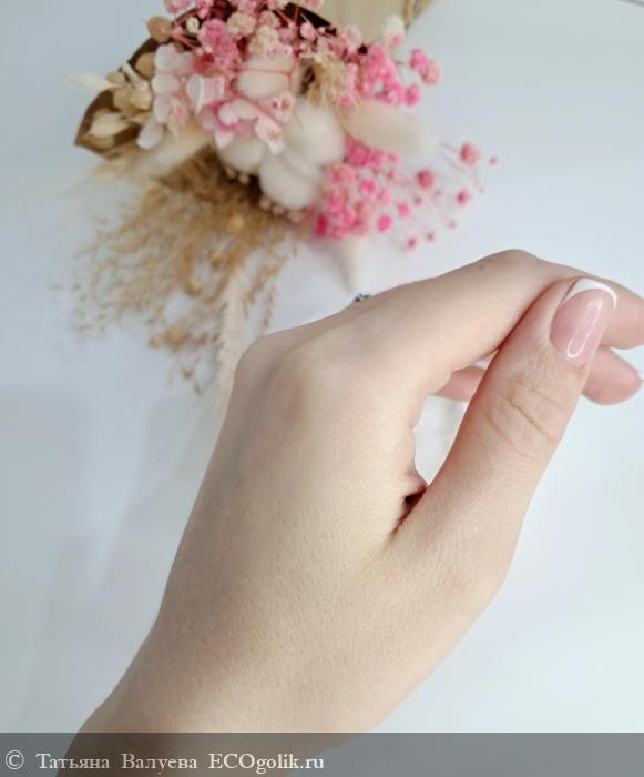 Крем легко наносится и распределяется по коже, не требуя больших усилий. Быстро впитывается, не оставляет следов на одежде и не создаёт ощущения тяжести на коже.