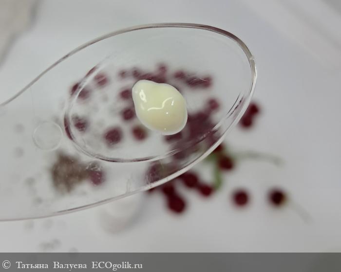 Крем легко распределяется и быстро впитывается, не оставляя следов или липкости на коже.