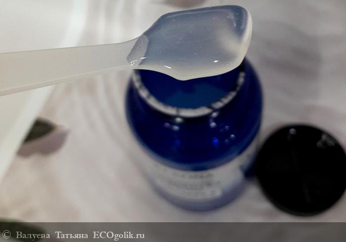 Текстура сыворотки имеет средней густоты консистенцию, что делает её очень удобной в использовании. Она прозрачного цвета, что добавляет ощущение лёгкости и свежести