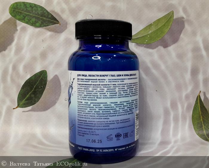 Два вида гиалуроновой кислоты - высокомолекулярная и низкомолекулярная - восстанавливают водный баланс и эластичность кожи. Гидролизованный морской коллаген V типа, полученный из некультивированного глубоководного моллюска, повышает упругость кожи, оказывает выраженный лифтинг-эффект, сужает поры, уменьшает постакне, выравнивает рельеф. Сыворотка увлажняет, устраняет шелушение, разглаживает мелкие морщинки. Осветляет, придаёт коже свежий и сияющий вид. Лёгкая текстура сыворотки создаёт защитный барьер на коже, сохраняя кожное дыхание. Некомедогенна, не оставляет липкости. Может использоваться самостоятельно, под основной уход или как база под макияж. Подходит для всех типов кожи.