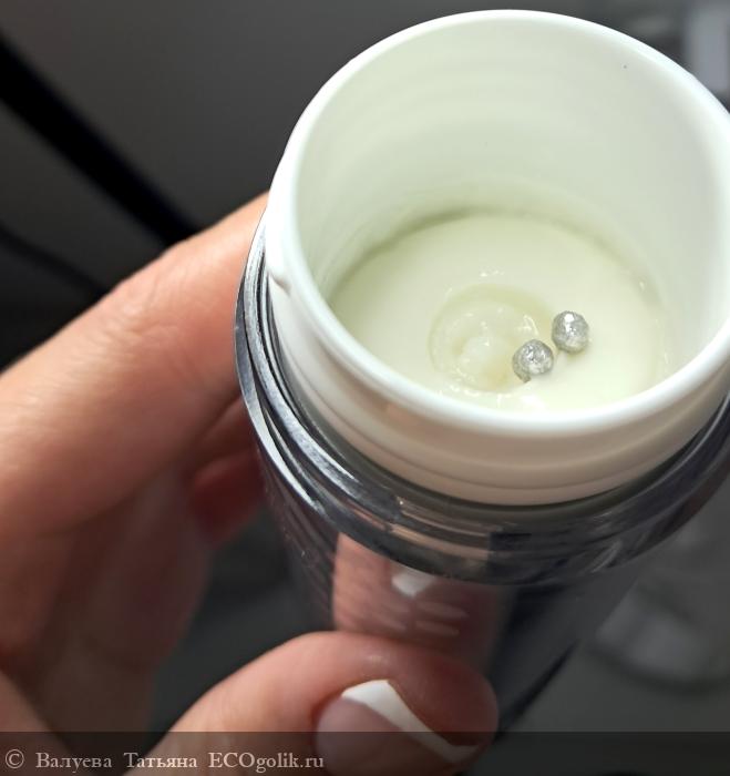 Откройте пакет с тремя шариками и аккуратно переместите их в крем, закройте крышку, сильно встряхните флакон, для равномерного распределения по объёму крема. Оставьте их там на все время использования. После погружения шариков в крем, им можно пользоваться 4 месяца. Когда закончится крем, утилизируйте упаковку вместе с шариками.