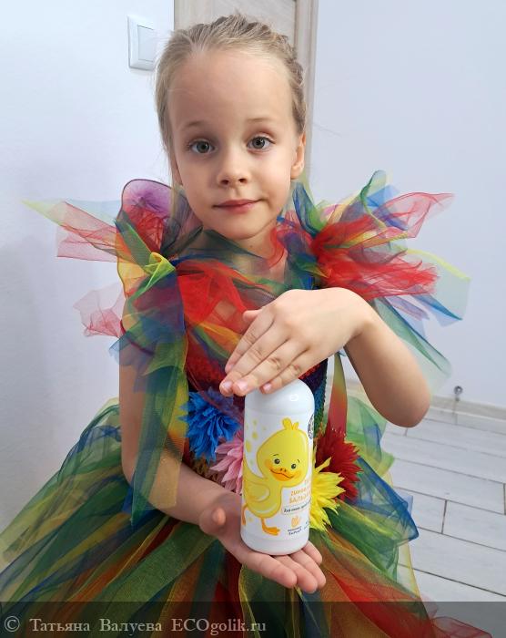 Дизайн флакона детского бальзама-эмолента выполнен в ярких и привлекательных тонах, что делает его визуально привлекательным для детей и родителей. На передней части флакона изображен милый жёлтый утёнок, который вызывает положительные эмоции и ассоциируется с чем-то мягким и уютным. Это создаёт ощущение заботы и нежности, что особенно важно для продуктов, предназначенных для детской кожи