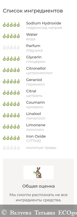 Сайт ECOGOLIK.RU не смог распознать все ингридиенты, но и нежелательных не выявил