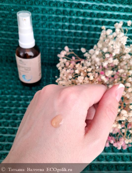 Сыворотка имеет среднюю густоту, что делает её удобной для нанесения. Она легко распределяется по коже, не оставляя ощущения тяжести или липкости.