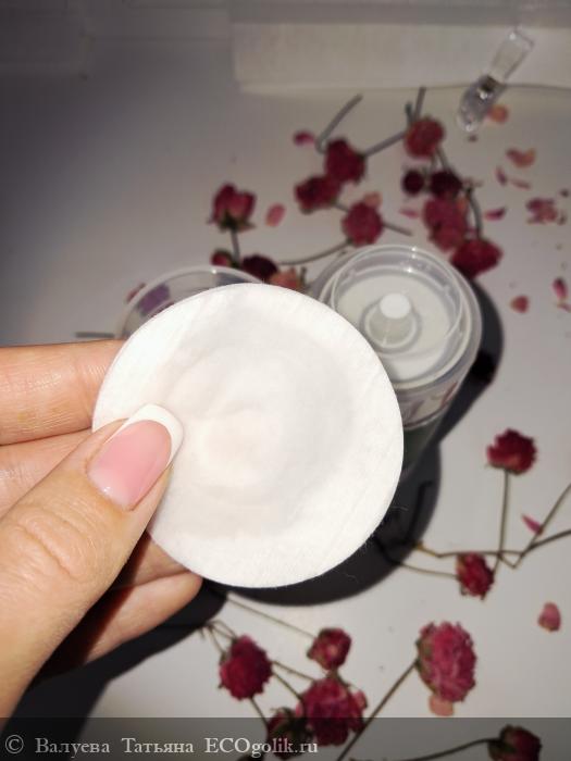 Процесс использования очень прост: я наношу небольшое количество средства на ватный диск и начинаю аккуратно, нежными движениями удалять макияж.