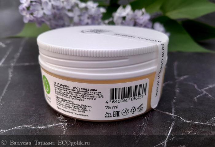 Объём 75 мл. делает продукт удобным для использования в домашних условиях или для путешествий. Также, хочу отметить и тот момент, что несмотря на маленький объём, расход средства тоже маленький. И очень хорошо, что у баттера срок хранения после вскрытия 12 месяцев, ведь я таким продуктом пользуюсь только по необходимости (если присутствуют на коже сухость и шелушение) Можно сказать, что мне, прям очень, выгоден этот срок хранения, да и объём тоже