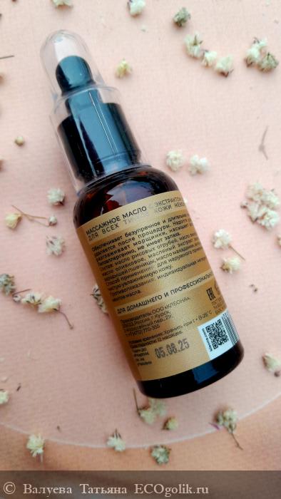 Натуральный состав масла обеспечивает комплексное воздействие на кожу, способствуя её увлажнению, питанию и защите, а жидкая и лёгкая текстура масла позволяет рукам легко скользить по коже и эффективно осуществлять процедуру массажа