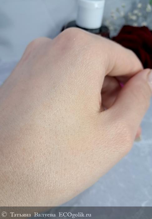 Флюид хорошо впитывается в кожу и оставляет приятное ощущение гладкости и увлажнённости. Он не оставляет жирной пленки, что позволяет использовать его как основу под макияж или самостоятельное средство ухода.