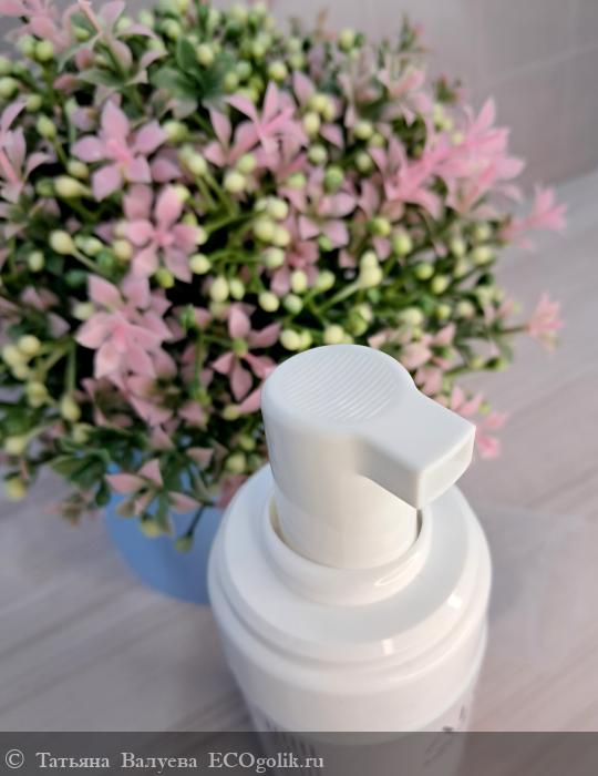Баночка оснащена удобным дозатором, который позволяет легко и аккуратно наносить пенку. Это практично и гигиенично.