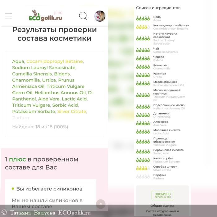 Состав полностью натуральный и одобрен сайтом ECOGOLIK.RU