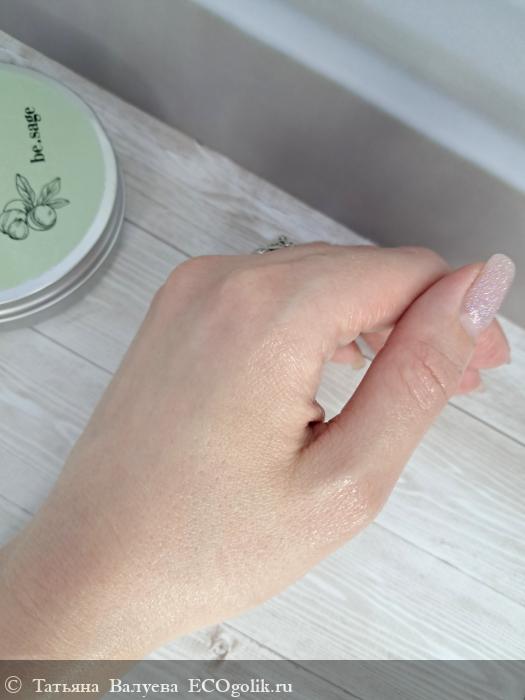 Объём продукта указан в нижней части баночки, что позволяет легко определить количество содержимого. На боковой стороне баночки вертикально написано "be.sage".