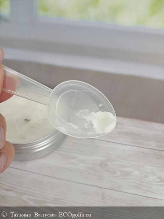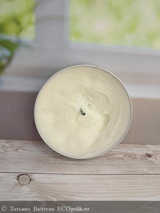 Баттер для тела имеет приятный белый цвет, что делает его визуально привлекательным и ассоциируется с чистотой и свежестью.