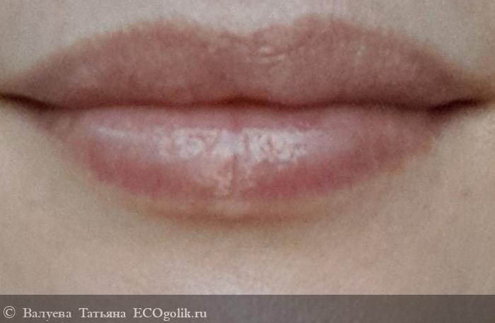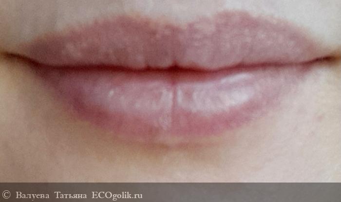 На губах совсем не остаётся. Смотрится так, как если бы ты накрасила губы гигиенической помадой или прозрачным блеском