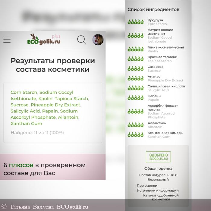 Состав этой энзимной пудры включает исключительно натуральные ингридиенты, каждый из которых играет важную роль в уходе за кожей: