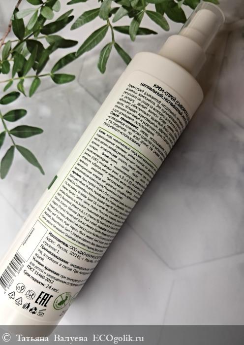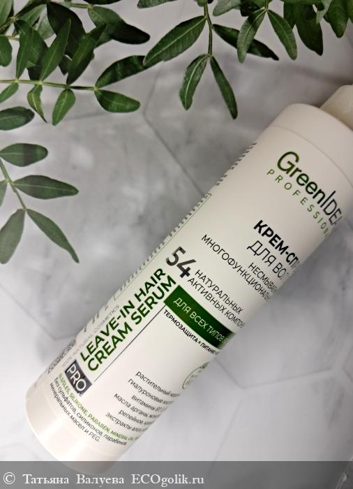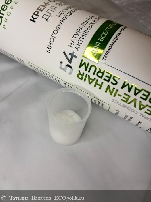 Крем-спрей (сыворотка) натуральный, несмываемый содержит 54 натуральных активных компонента. Это мультифункциональное средство для максимального результата по уходу за волосами всех типов. Крем-спрей облегчает расчёсывание и укладку, делает волосы более мягкими, гладкими, послушными и увлажнёнными, обеспечивает здоровый блеск, продлевает яркость цвета окрашенных волос, обладает термозащитным эффектом, помогает справиться с пушистостью, сечением кончиков и укрепляет корни. Подходит как для профессионального, так и для домашнего использования.