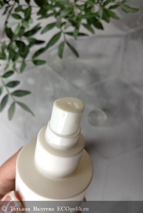 Текстура флакона гладкая и приятная на ощупь, что добавляет ощущения премиальности. Оттенок белого цвета флакона и зелёного цвета этикетки создаёт гармоничное сочетание, которое ассоциируется с натуральностью и экологичностью