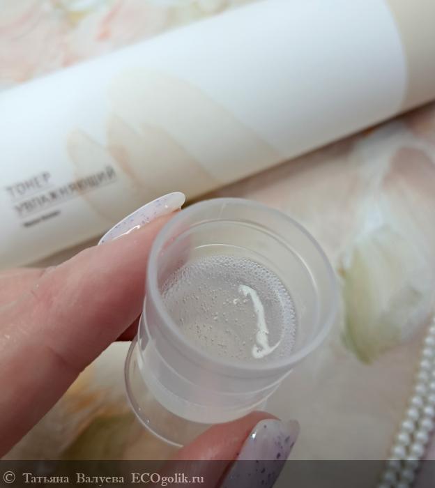 Этот тонер обладает идеальной консистенцией, напоминающей жидковатый крем. Она легкая и нежная, что позволяет средству легко распределяться по коже и не оставляет ощущения тяжести или липкости. Такая текстура идеально подходит для утреннего ухода, обеспечивая быстрое впитывание и подготовку кожи к последующему нанесению макияжа.