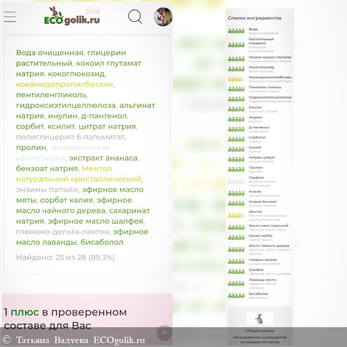 Состав натуральный, но не все ингридиенты распознаны сайтом ECOGOLIK.RU