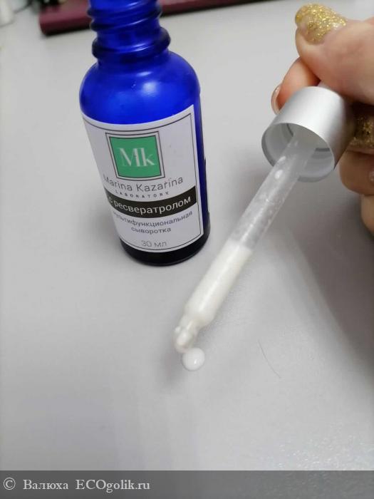 Обычно я беру одну тогда из сывороток с сайта Марины Казариной. В этот раз выбор пал на сыворотку с ресвератролом. У сыворотки приятный аромат, такой натуральный, растительный. Она хорошо впитывается. Наношу исключительно на чистую кожу. На лицо и шею. Даже под глаза не гнушаюсь нанести. Обнаружила, что коже вокруг глаз сыворотки Казариной очень нравятся. Никогда не бастовала))).