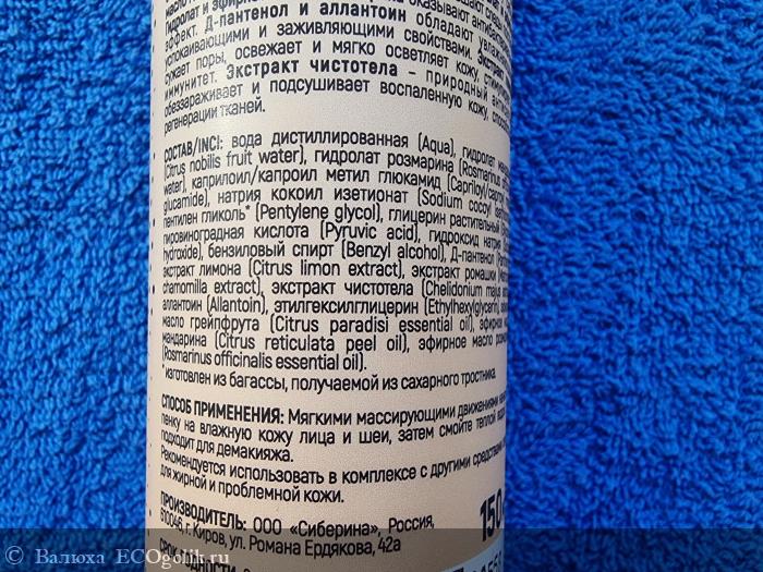 В составе кроме нее гидролат и эфирное масло мандарина, которым нежно пахнет средство, они выравнивают цвет кожи лица. Пантенол в составе пенки и аллантоин заживляют кожу, успокаивают, увлажняют. Экстракт лимона осветляет кожу, тонизирует, подсушивает жирные части кожи лица, регенерирует ее.