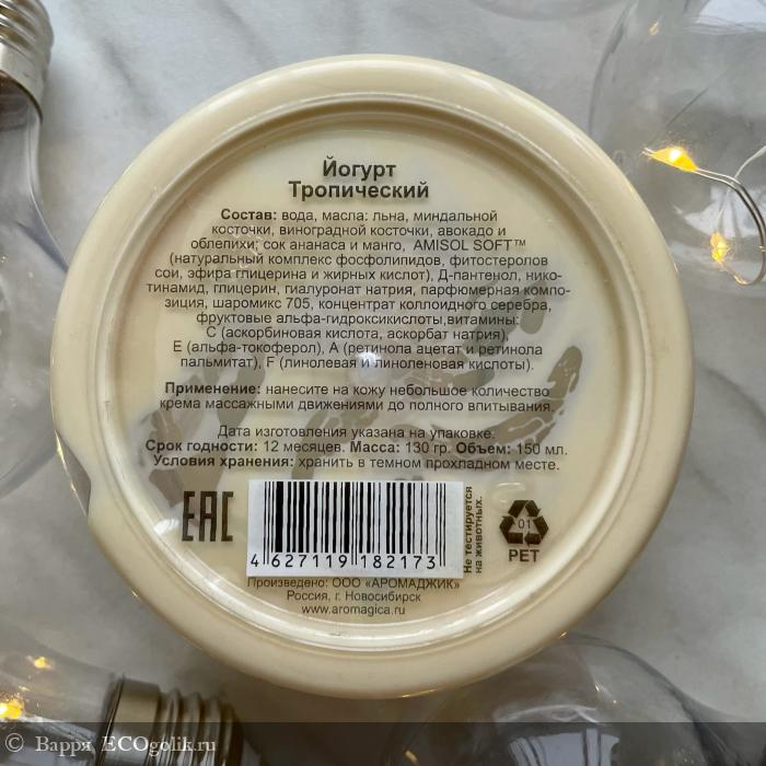 Состав очень интересный, в нем нет типичных для крема для тела масла ши, жожоба, и прочих популярных ингредиентов, очень ново и свежо (для меня). Ссылка на анализ состава : https://ecogolik.ru/sostav_kosmetika/result/131304... .