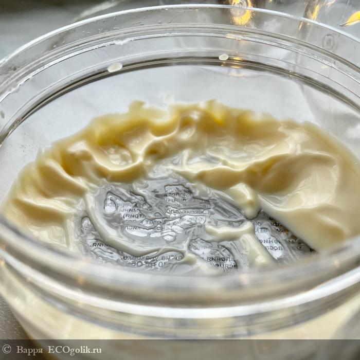 (это моя баночка, 150 мл, спустя месяц использования, как видно, крем достаточно густой (остаются вот эти гребни от пальцев рук при взятии крема))
