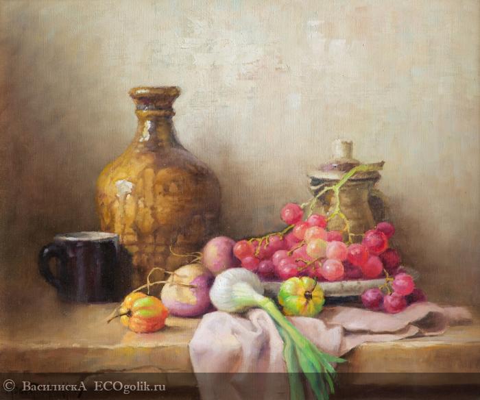 В заключение хочу показать, как же выглядит тот самый красный виноград. Мне поможет в этом картина французского художника Робера Шайю (1913 — 2006), которая так и называется «Красный виноград».
