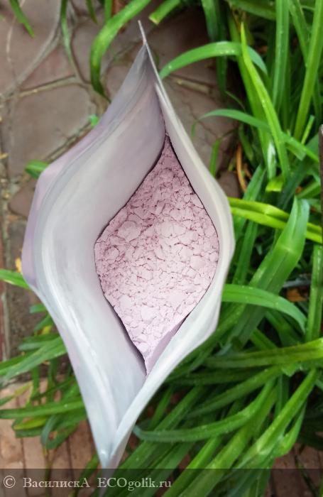 . Сухое сырье реально растянуть и на 4 применения, но я рекомендую не экономить и сделать маску трижды. Порошок пахнет спелым виноградом и имеет лишь легкий фиолетовый оттенок — красителем производитель не злоупотребляет.