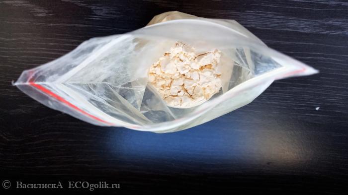 Процедура приготовления маски подробно расписана все в той инструкции на оборотной стороне упаковки. В пакетике, который мы достаем из пачки, находится 50 граммов порошка для приготовления маски. Зип-застежка позволяет использовать сырье несколько раз, потому что на одну процедуру требуется 20 граммов маски и 60 граммов воды