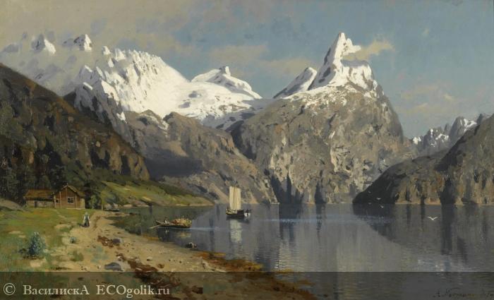 В отзыве использована картина «Пейзаж. Фьорд», которую написал норвежский художник Эйлерт Адельстен Норман (1848-1918)